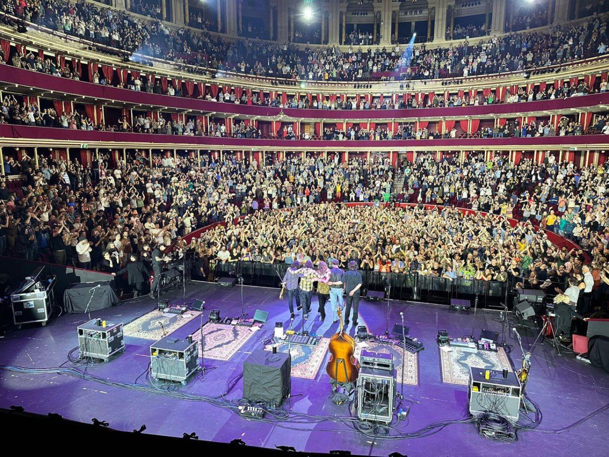 The crowd had felt their absence; a powerful roar when the band came on the stage had a palpable effect on the quintet, and marked the start of a remarkable connection between performer and audience that pulsated through the evening. The Royal Albert Hall is a spectacular venue, built by Queen Victoria to memorialise her late husband, and is particularly well suited to jam-band shows. There is a Colosseum-like panorama for the performers, with circles stacked on top of each other to create a wall of audience, that in this case were screaming for the long absent Billy Strings. Preceding his usual greeting “Howdy” there was an awestruck look and a stunned “what the…” at the ecstatic reception.