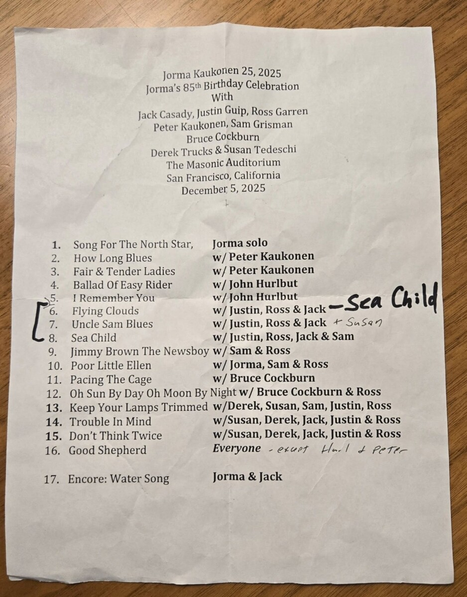 All of these Jorma 85th birthday shows have been very special, and I feel very lucky to have been able to attend one of these shows.
