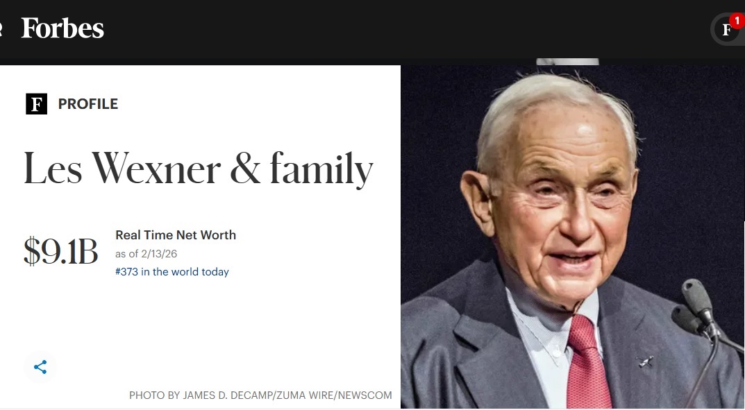Les Wexner & Family $9.1 Billion real-time net worth, Feb. 2026