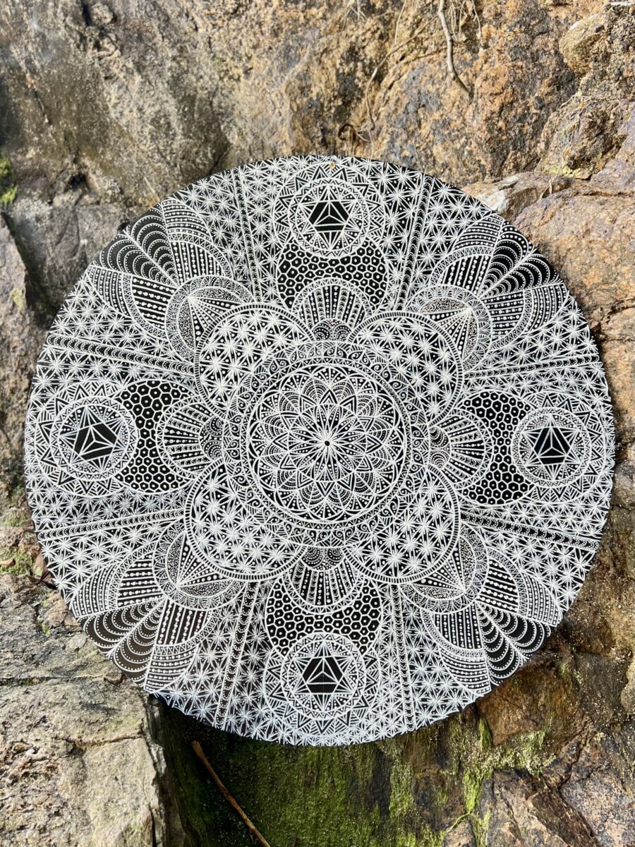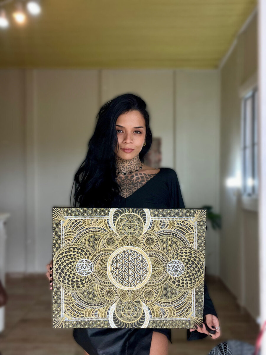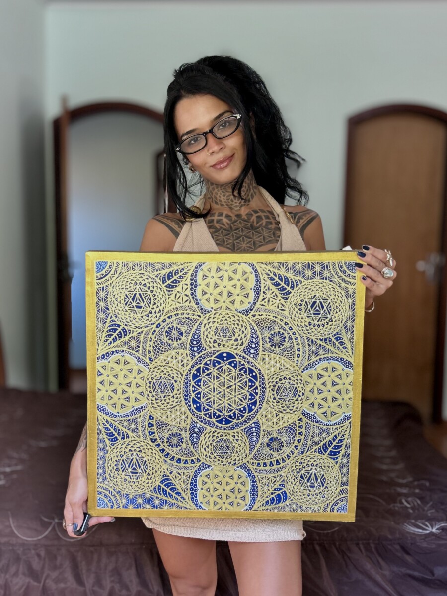 As she describes it: “My mission is to transform this constant flow of information into art. My artistic expression allows me to connect with the micro and macro of the universe and nature, translating them into sacred geometry. Art is the thread that connects me with the world.”